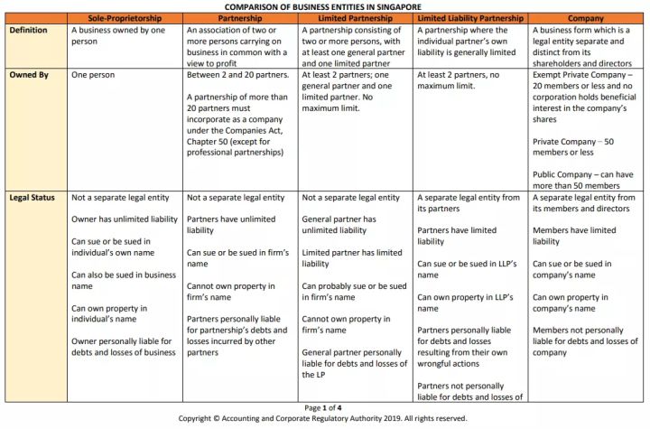 以上類型在公司法律地位、注冊手續(xù)、運營要求、董事秘書配置上,新加坡注冊局都有詳盡的說明,以下為主要內(nèi)容:
